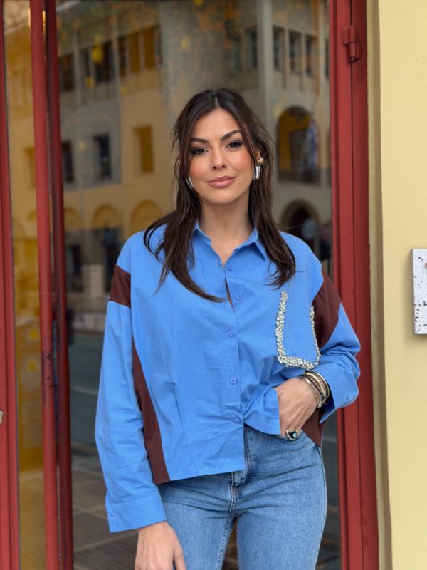 Πουκάμισο δίχρωμο με στρας στην τσέπη