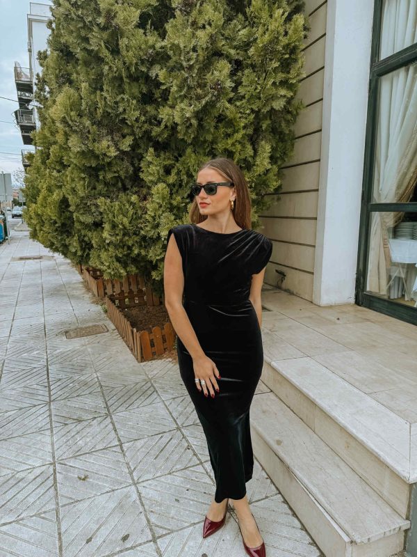 Φόρεμα μίντι βελούδο με ανοιχτή πλάτη