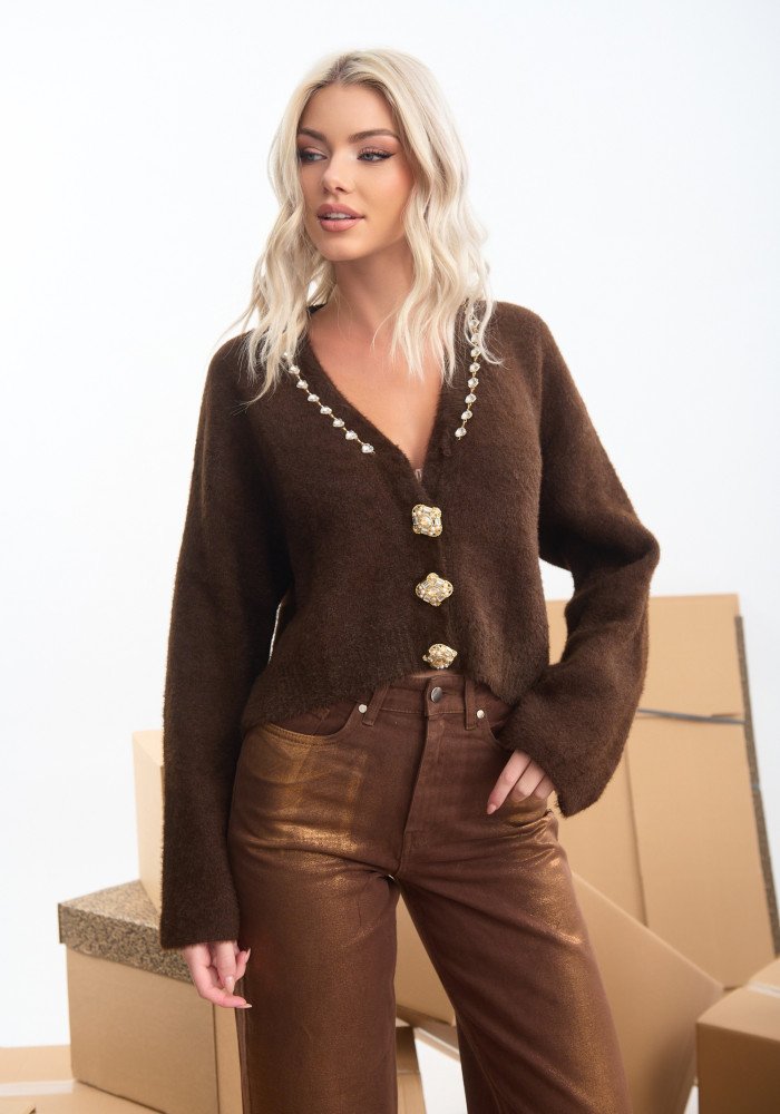 Ζακέτα με μαλακή ύφανση και χρυσά κουμπιά στρας