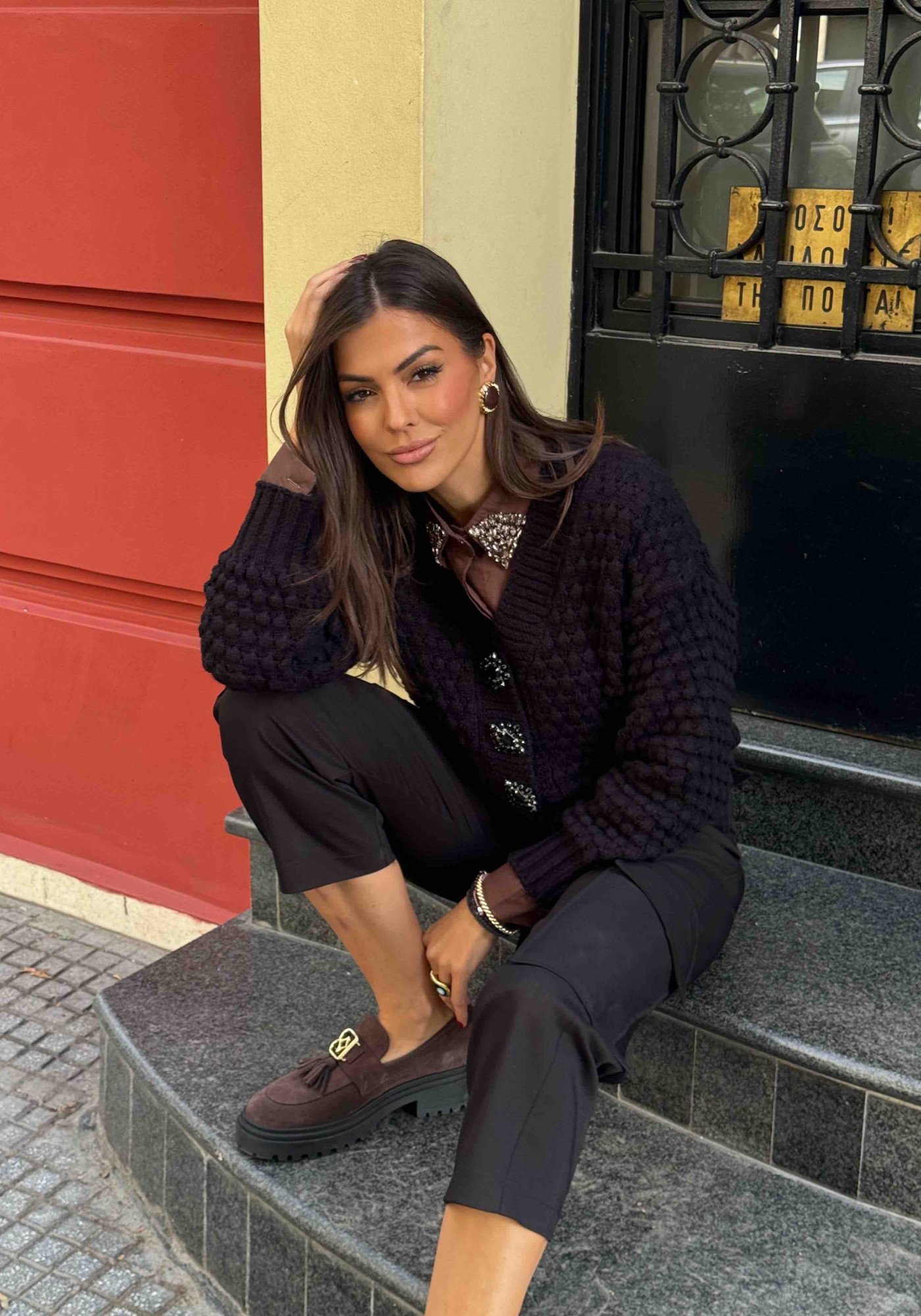 Μπλούζα πλεκτή με διακοσμητικά κουμπιά