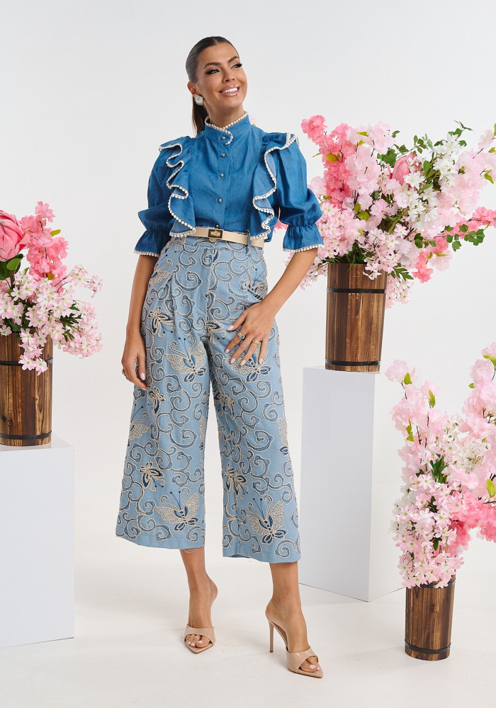 Γυναικείο υφασμάτινο παντελόνι με πιέτα Brigitte