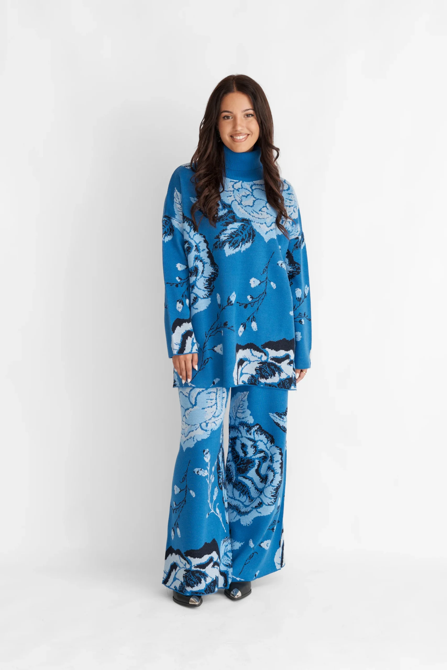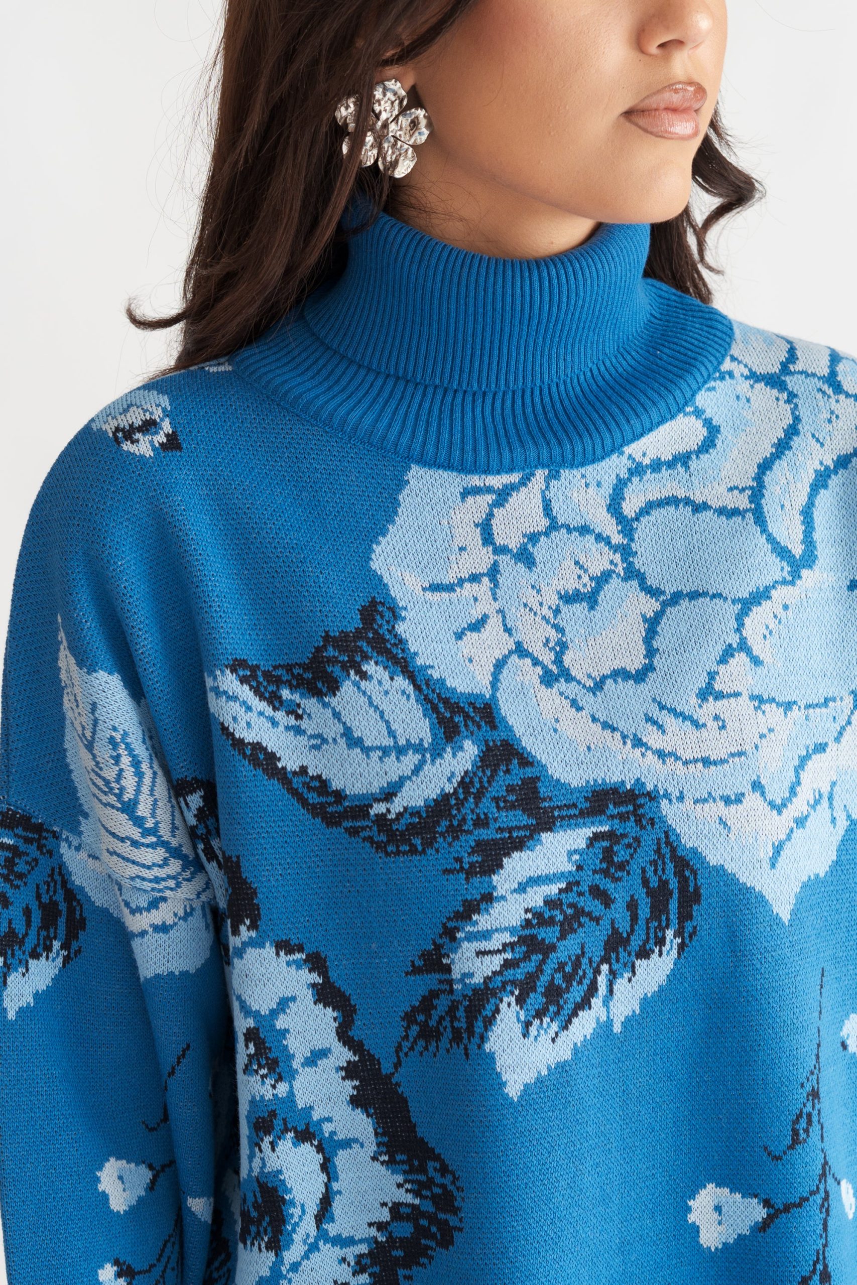 Πλεκτή φλοραλ μπλούζα