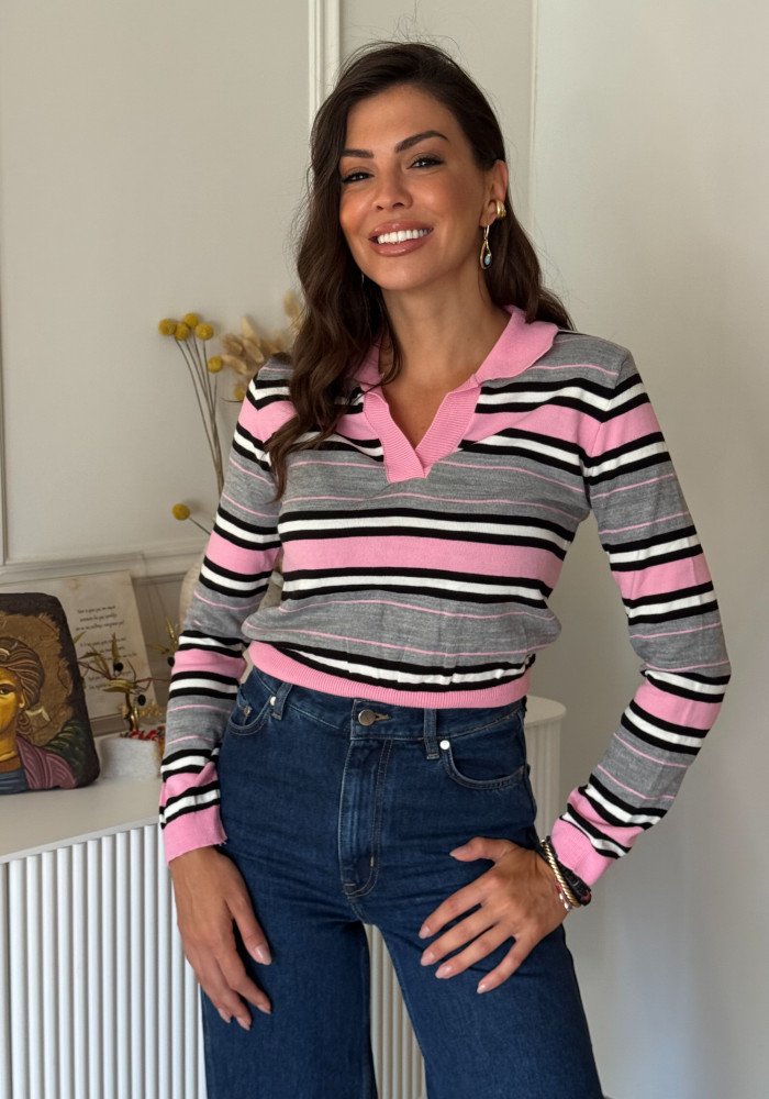 Πλεκτό τοπ με γιακά