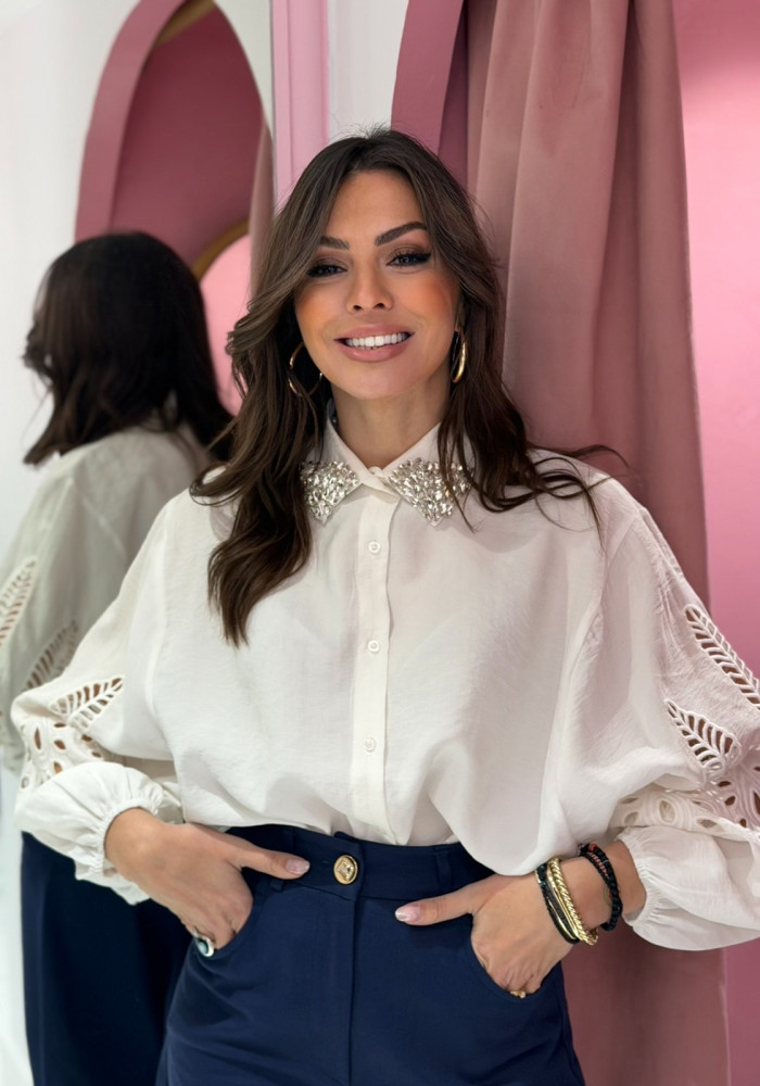 Πουκάμισο με στρας στο γιακά και δαντέλα στο μανίκι