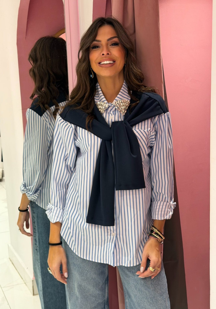 Πουκάμισο Ριγέ Με Στρας Στο Γιακά