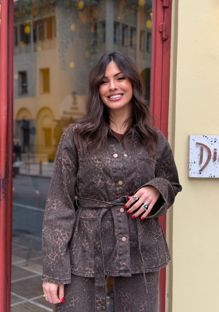 Σετ λεοπάρ Τζιν Τζάκετ Με Παντελόνι