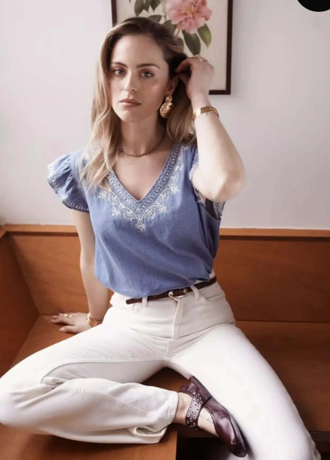 Μπλούζα μακρυμάνικη με διακοσμητικά λουλούδια Brigitte