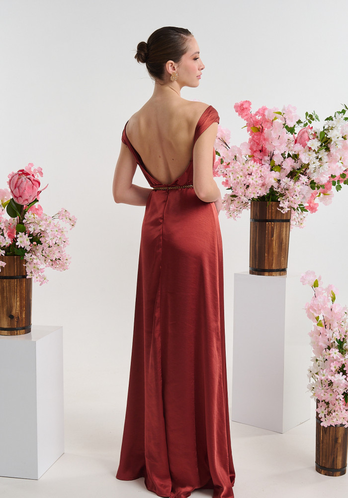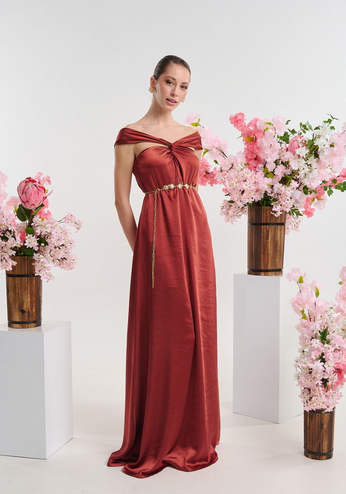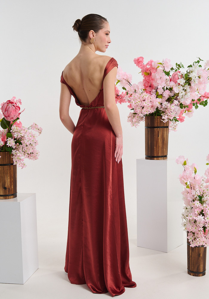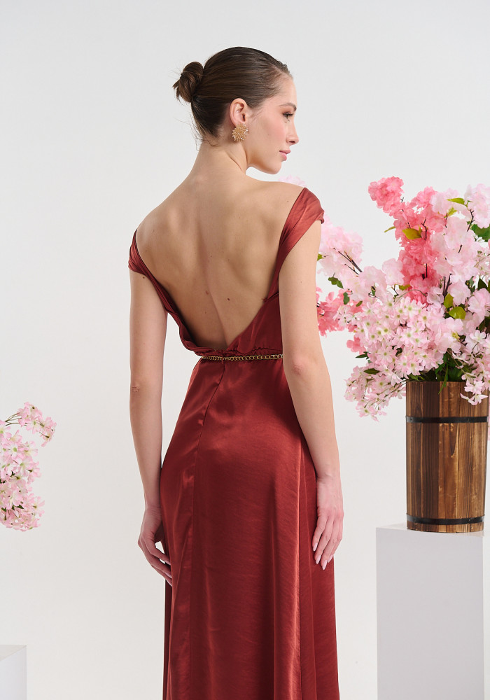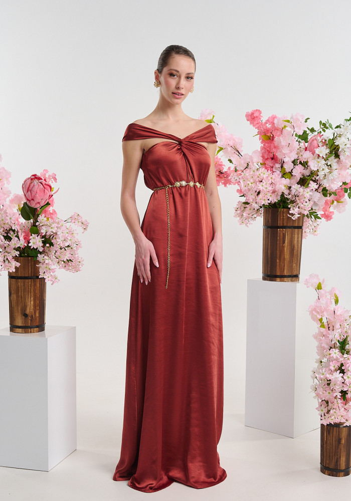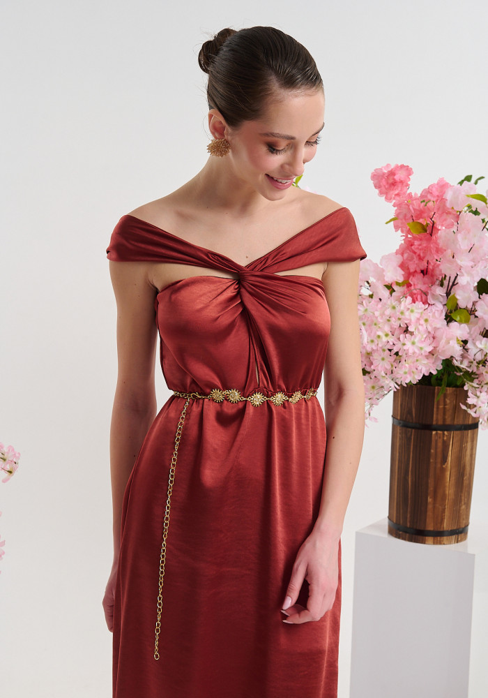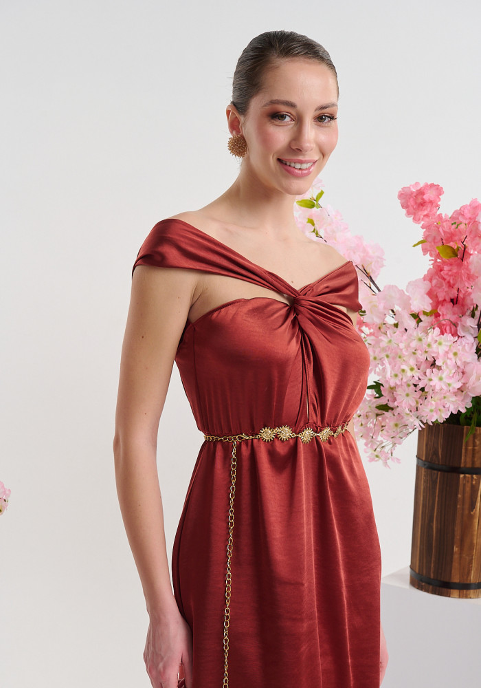 Φόρεμα μάξι σατέν με χιαστή σχέδιο