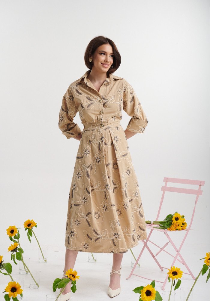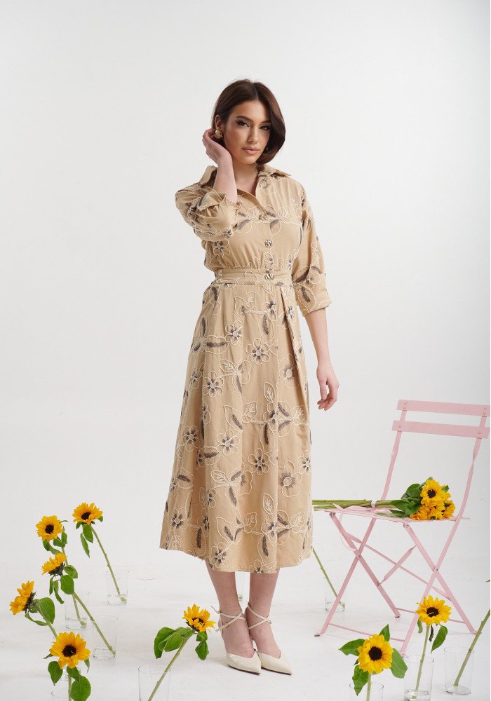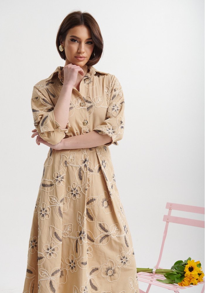 Φόρεμα μίντι με κεντήματα και γιακά