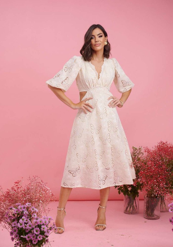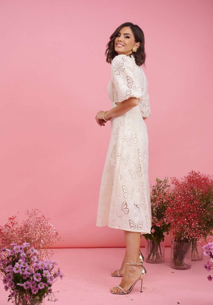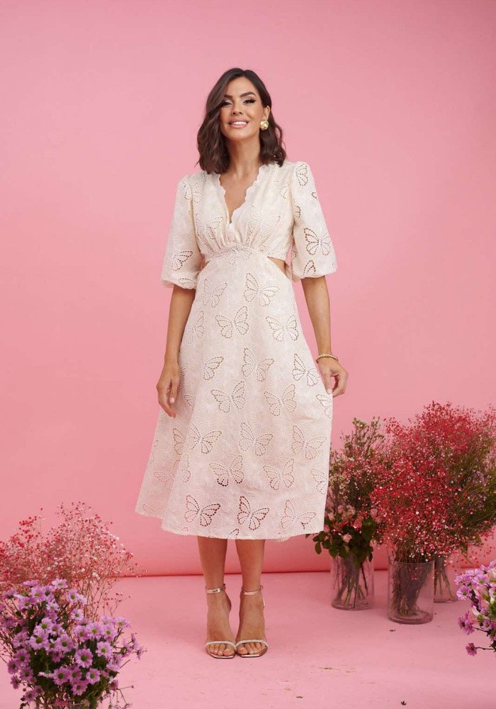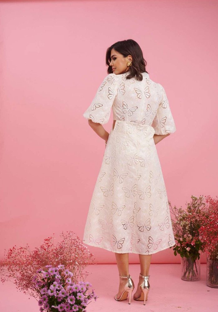 Φόρεμα μίντι πεταλούδα με ανοίγματα στη μέση Βανίλια