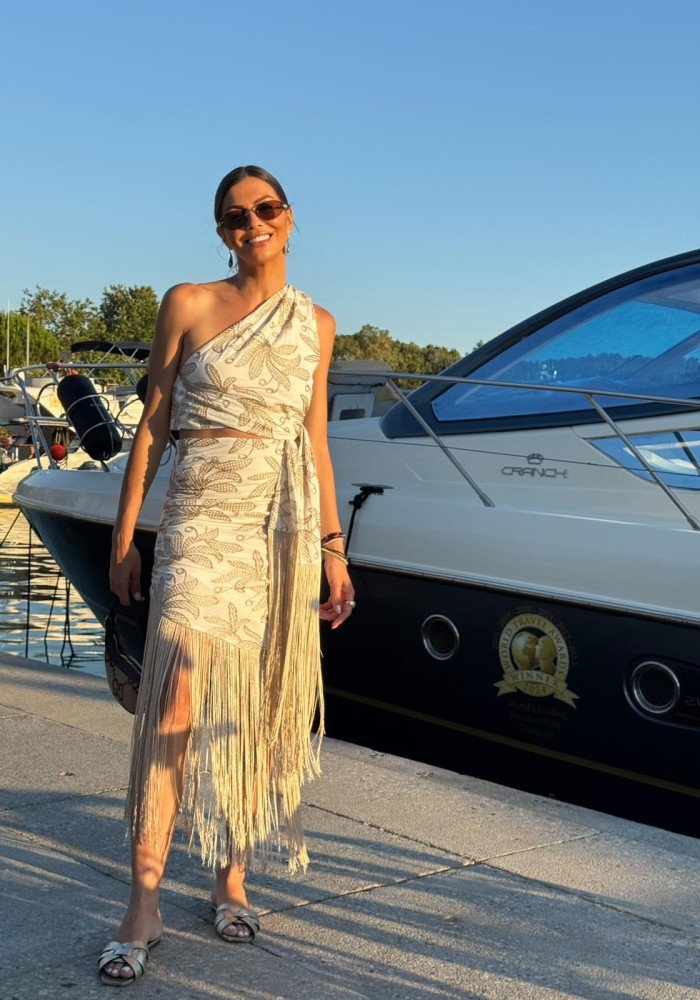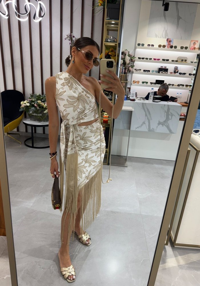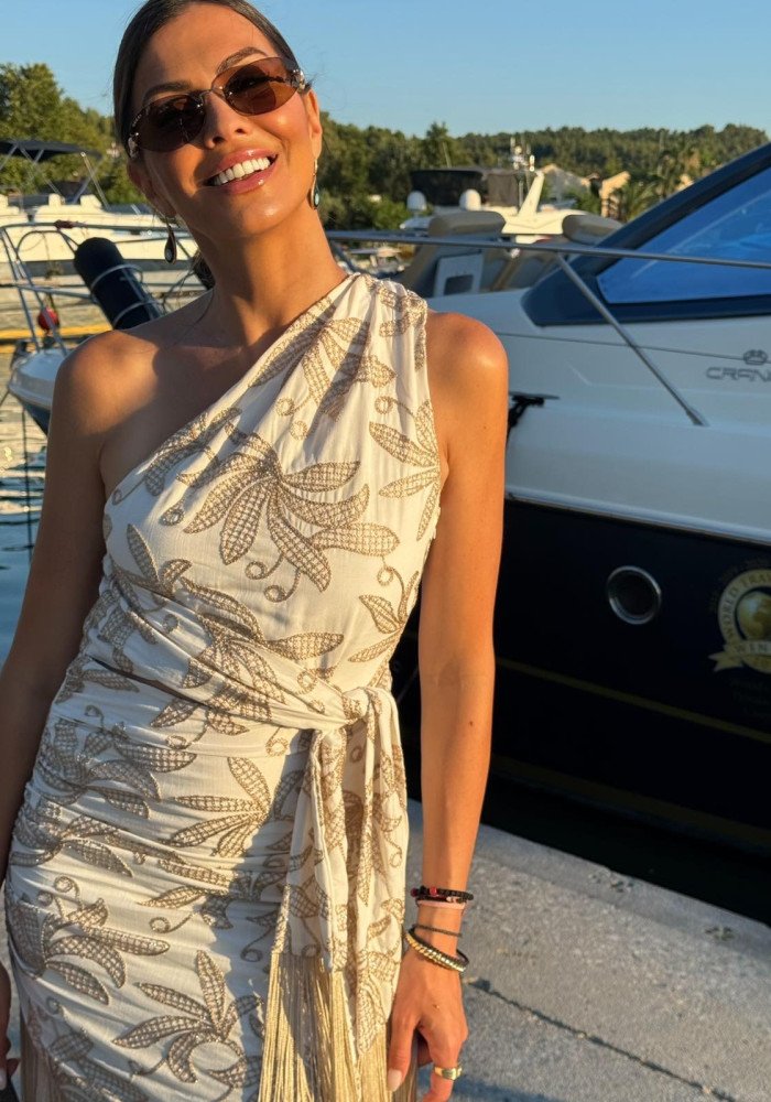 Φόρεμα με έναν ώμο και κρόσσια