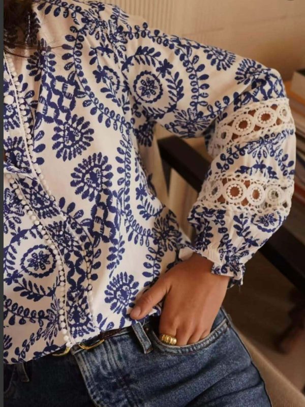 Μπλούζα μακρυμάνικη με διακοσμητικά λουλούδια Brigitte