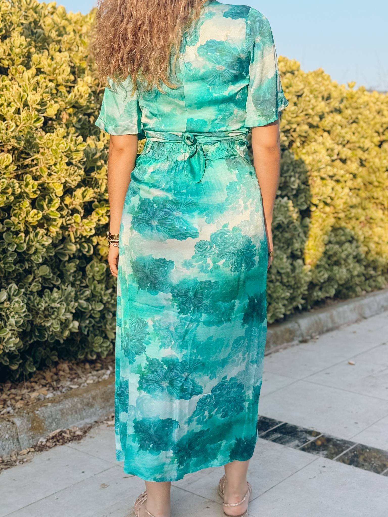 Γυναικείο φόρεμα μάξι σατέν με έναν ώμο Rose