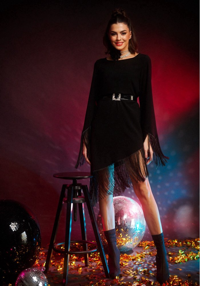 Γυναικείο ασύμμετρο φόρεμα με κρόσσια Avil