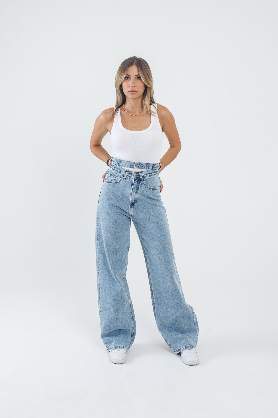 Γυναικείο τζιν παντελόνι με διπλή ζώνη