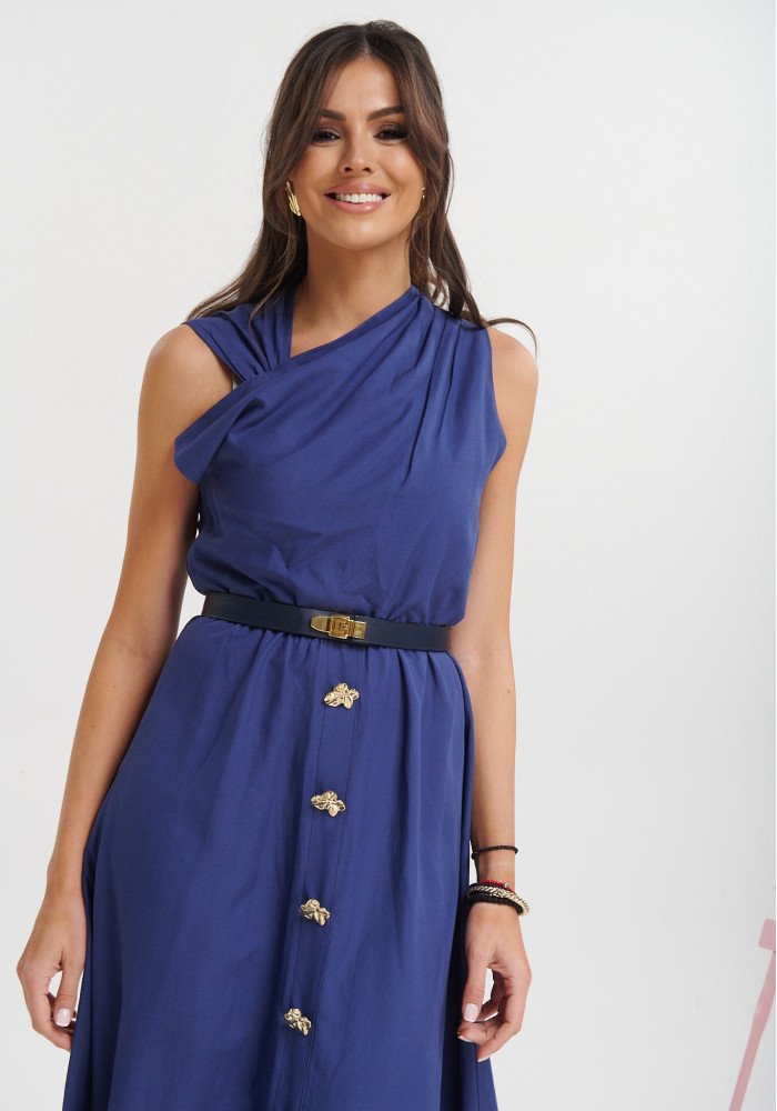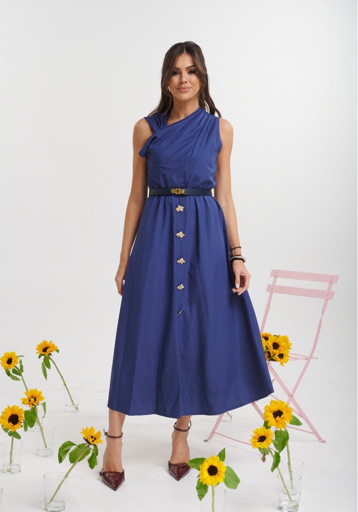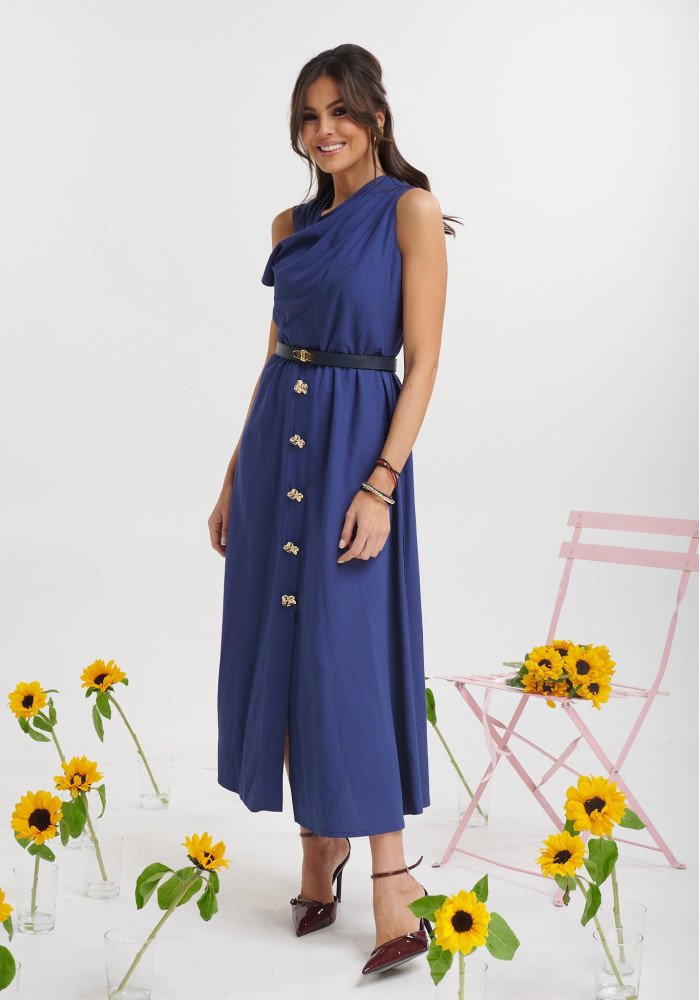 Φόρεμα midi αμάνικο με χρυσά κουμπιά