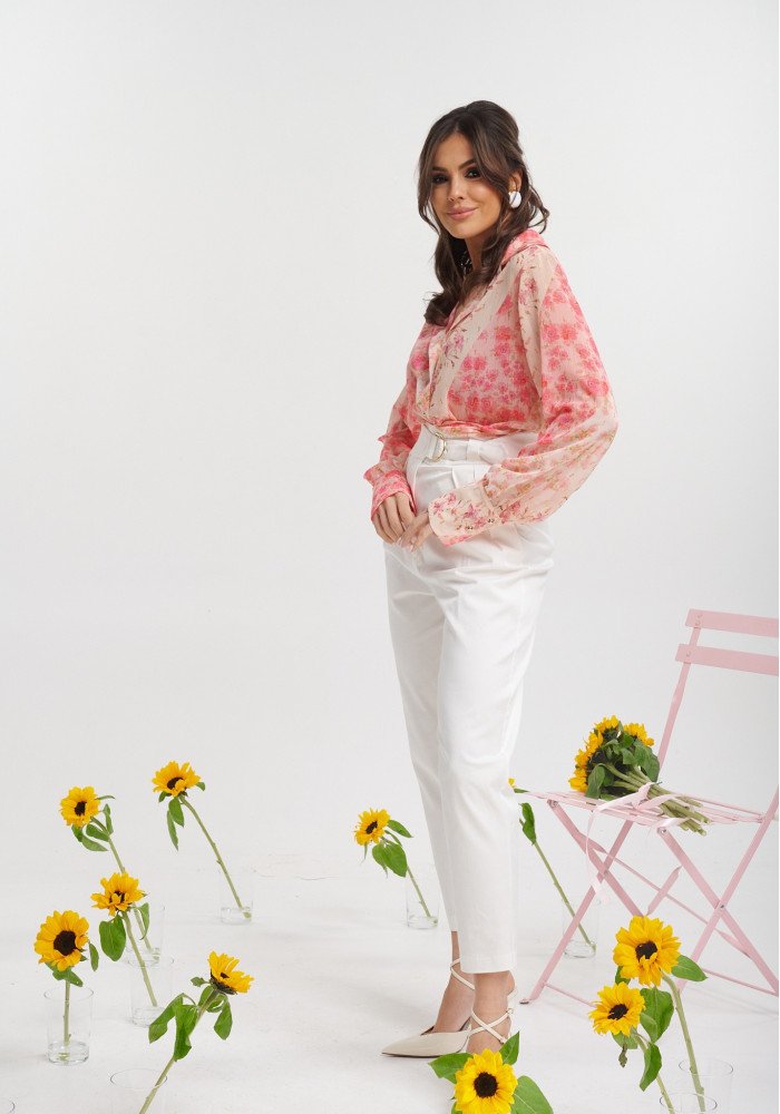 Ψηλόμεσο παντελόνι με ζώνη και πιέτες