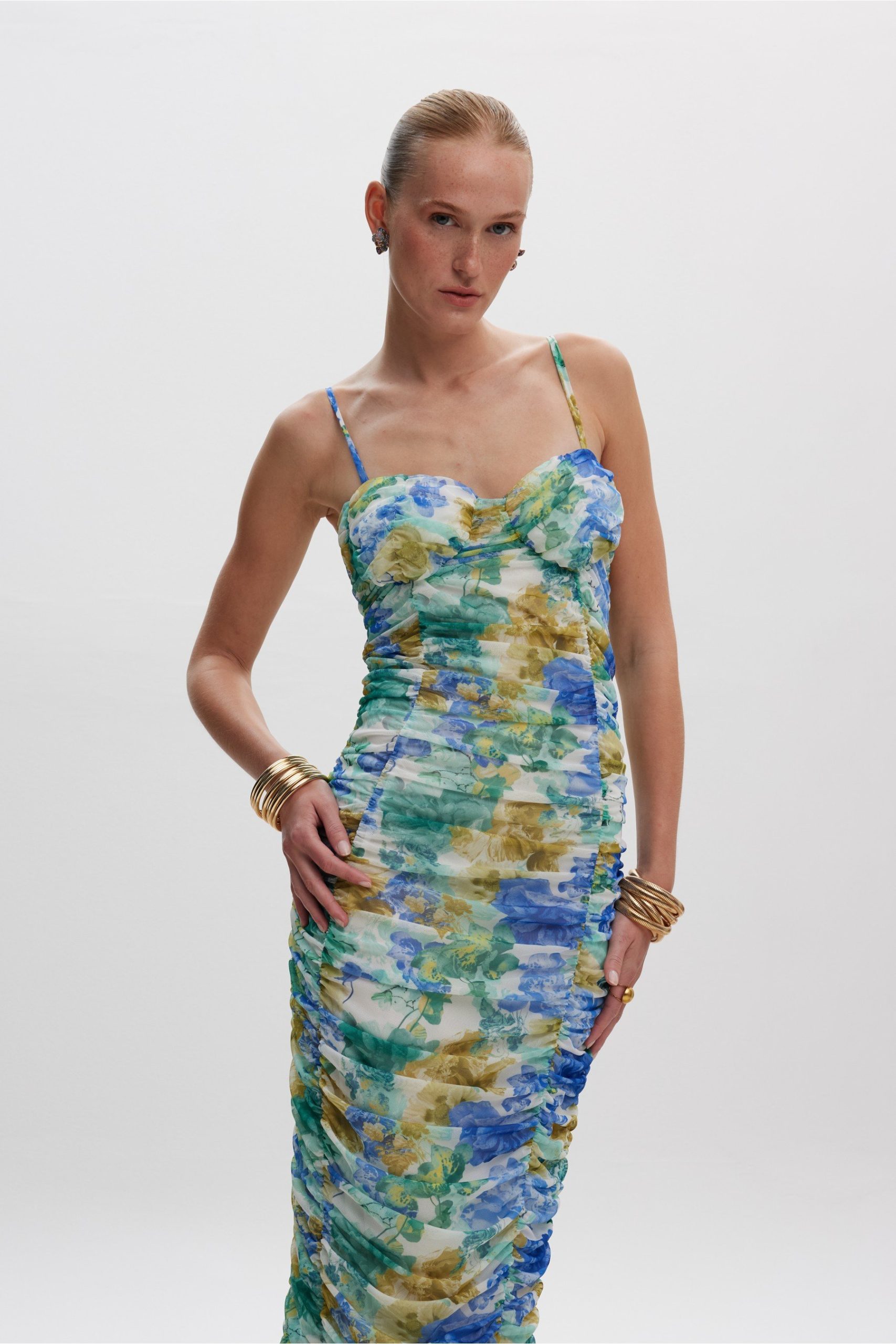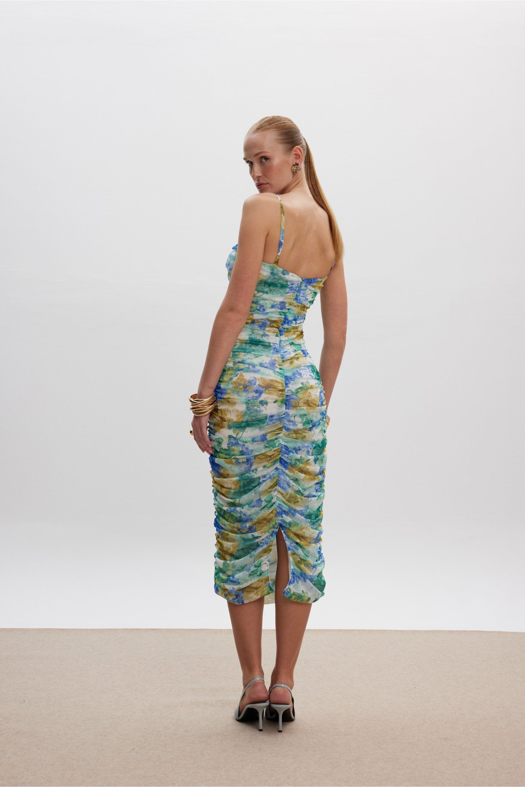 Γυναικείο φόρεμα μάξι με ανοίγματα ΕΜΕΛΙΑ/ΣΟΜΟΝ ΓΚΡΙ