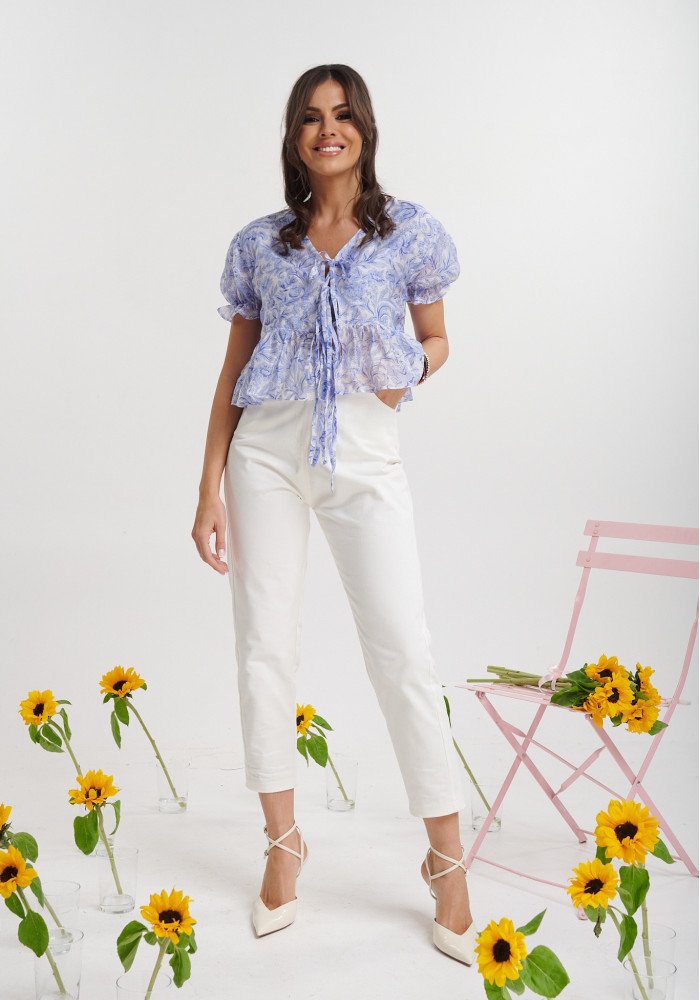 Γυναικείο κροπ τοπ κοντομάνικο με γιακά Noeli Brigitte Boutique